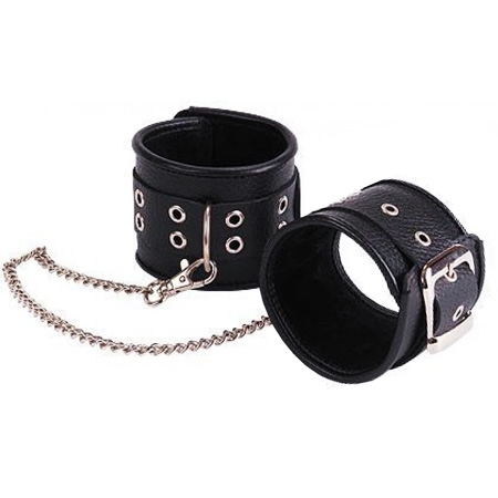 Соединяются между собой металлической цепочкой с двумя карабинами на концах (35 см). Внутри мягкая прокладка, не нарушают кровообращение.