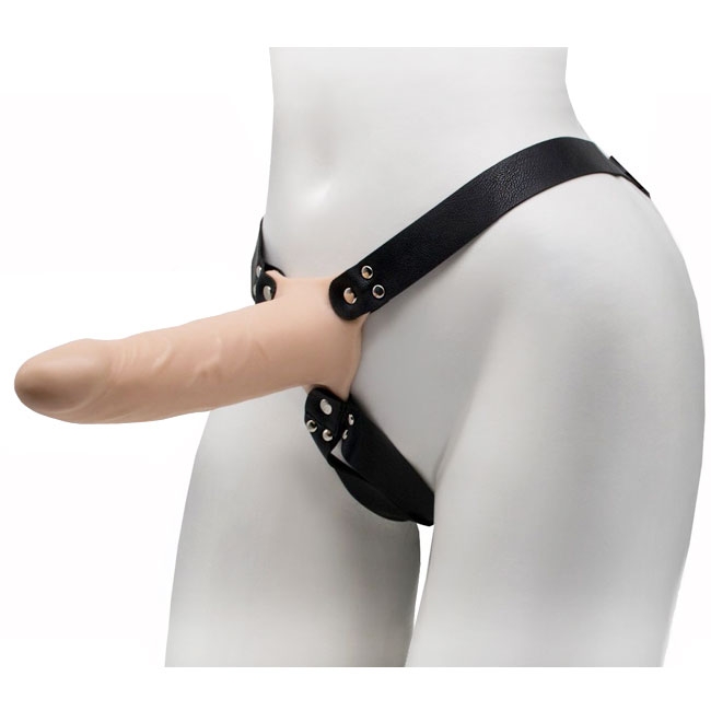 Пустотелый фаллоимитатор (фаллопротез) реалистичной формы с бандажным поясом.