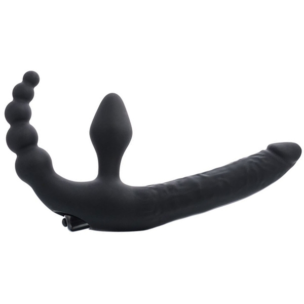 Безремневой вибрострапон с вагинальной пробкой и анальным стимулятором.